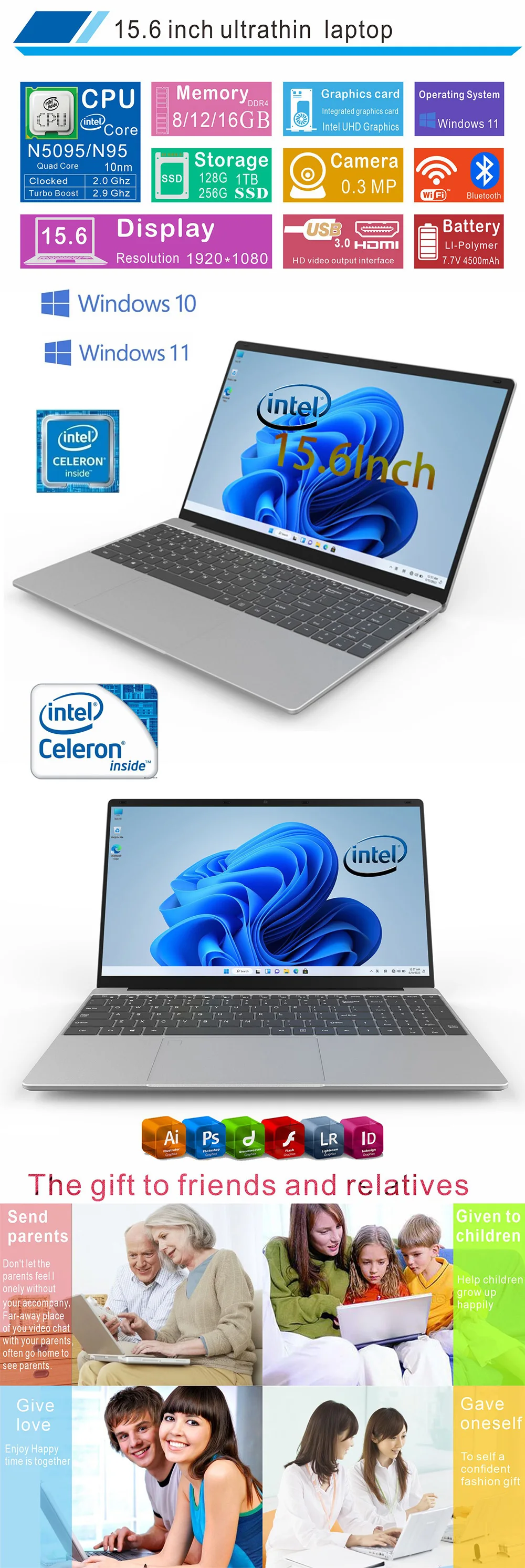 15.6" Ultrabook with Intel Celeron N5095 – Sleek, Powerful, Made for Home, School & Business