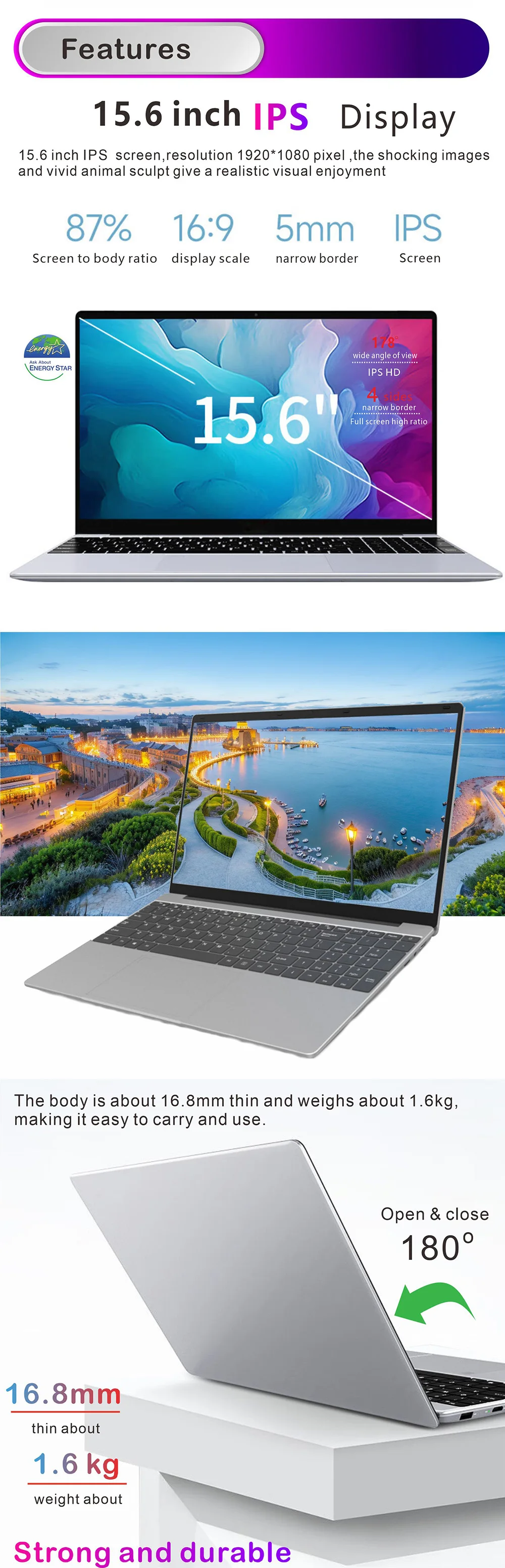 15.6 inch IPS screen,resolution 1920*1080 pixel, 16 :9