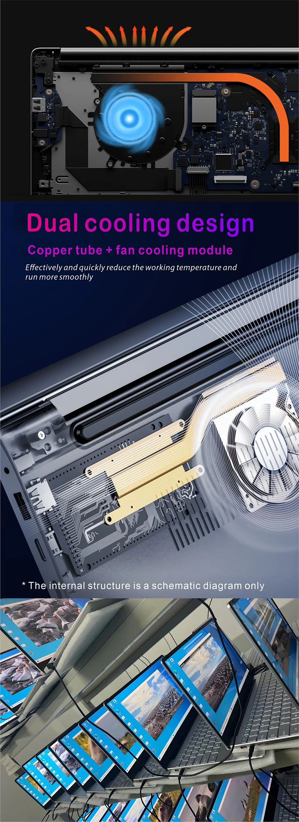 Piping and Fan cooling design,effectively and quickly reduce the working temperature and run more smoothly.